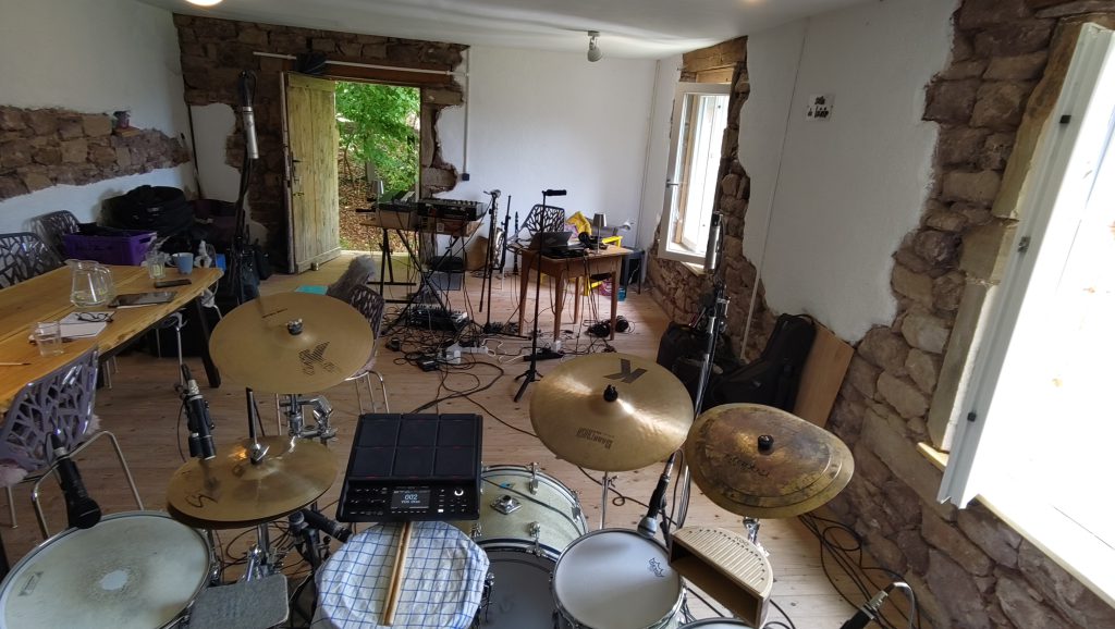 Im Sommer waren wir wieder in den Vogesen und haben 4 Songs aufgenommen. Dort auf dem Bauernhof im neuen Raum „Salle de Loisir“ haben wir uns ausgebreitet, und die schöne Atmosphäre und den tollen Ausblick auf’s Tal beim Spielen genossen.
